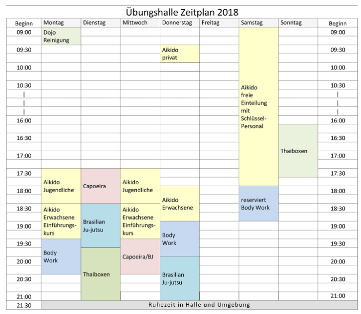 Januar 17, 2018Gregor Zeitplan 2018 für Übungshalle Dojo Villach Ab sofort gilt der neue Zeitplan für die Übungshalle im Dojo Villach. Teilen mit: Auf X teilen (Wird in neuem Fenster geöffnet) X Auf Facebook teilen (Wird in neuem Fenster geöffnet) Facebook Ähnliche Beiträge
